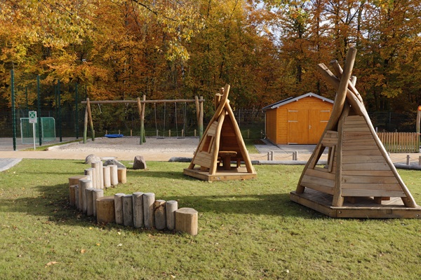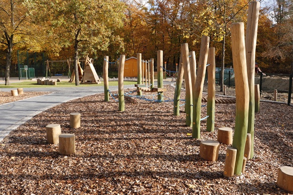 Der neu entstandene Spielbereich richtet sich vor allem an Kitakinder ab 3 Jahren. Neu entstanden sind unter anderem ein Balancierparcours, Maltafeln, eine Wassermatschanlage, ein Federwippgerät in Form eines Tausendfüßlers, eine große Spielanlage, Schaukeln, Tipis und ein Bolzplatz. Zusätzlich wurden neue Wegeführungen als Rollerbahn, eine Terrasse mit Sonnenschutz, Pflanzflächen und eine Rigole angelegt.